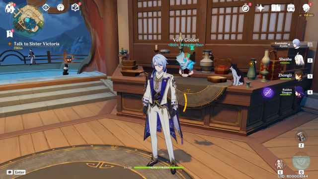You will find her at the Wangshu Inn main counter. Interact with her during or after the Genshin Impact version 2.7 update. Select the dialogue option that opens up the Shop menu. You will find the Stir-Fried Shrimp recipe, which you can get in exchange for Mora.