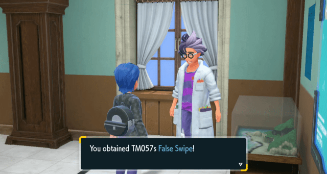 Once you do that, head to Uva Academy or Naranja Academy. There you must go to the Biology Lab and talk to Professor Jacq. For 30 Pokémon in the Pokédex, he will give you three False Swipe TMs. Moreover, now you can craft this TM with the following recipe: