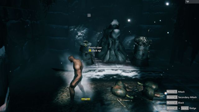 Eventually, you should find a shrine dedicated to Fenrir. You can find a Fenris Claw on one of the pedestals, alongside some Fenris Hair. You can find more pedestals like this if you continue to explore the hideout.