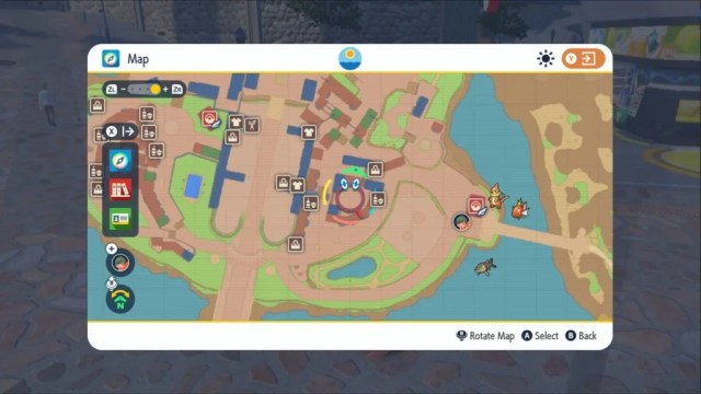 Grass Knot TM is behind an alleyway in a nestled plaza that’s not very easy to find. So to get there, you have to go to the eastern Mesagoza Pokémon center. Your compass will come in handy for the trip since the green arrow on your mini-map always points north.