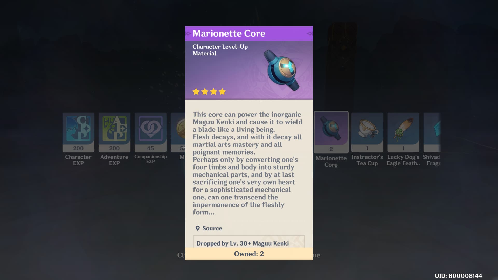 Currently, Marionette Core is only used for ascending the upcoming five-star playable Anemo user, Kazuha. He is the first Inazuma character to release in Genshin Impact. His banner will go live in the latter half of the version 1.6 update. Once players have wished and obtained Kazuha, they can use the Marionette Core to ascend his level.