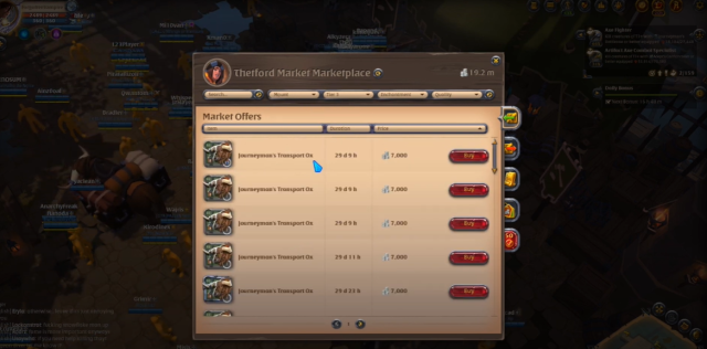 Buying mounts from the marketplace is the easiest way to get mounts in Albion Online. Players need 7000 silver to buy Journeyman’s Transport OX. To do that – simply open the marketplace menu and select the mounts tab and then make the purchase.