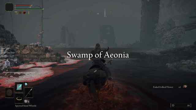 To reach the Swamp of Aeonia, you have to travel East from the First Step Site of Grace to reach Dragon Burnt Ruins. There, look for stairs that lead to an underground room.