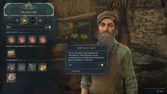 In Hogwarts Legacyyou can purchase Shrivelfig Fruit for 150 Gold from the vendor NPC named Timothy Teasdale, who runs The Magic Neep shop in Hogsmeade.