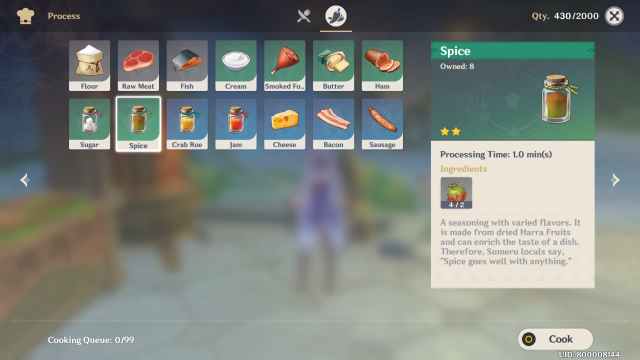 Alternatively, you can use the primary method of obtaining Spice in Genshin Impact by processing the Harra Fruit ingredient found all around the Sumeru region of Teyvat.