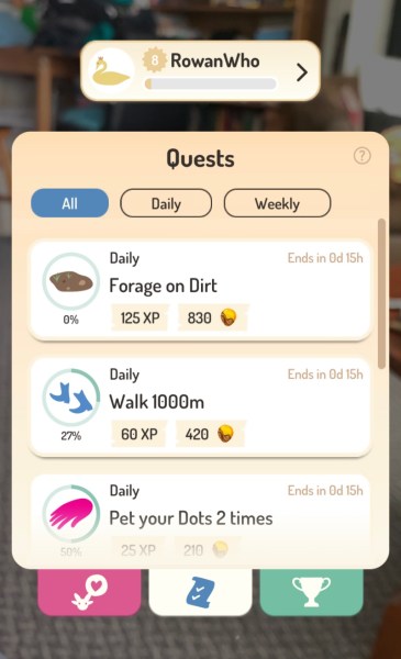 Sundrops are one of the most important in-game currencies in Peridot as they are used in conjunction with Nests to complete the Hatch A Dot process so you can grow a new Baby Dot. Gather Sundrops whenever you complete Daily and Weekly quests. If you run out of Daily Quests feed Dewdrops to your pet to refresh and get three new dailies and the chance to earn more Sundrops.