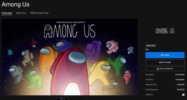 Among Us is available for 1.99 USD on the Epic Games Store. Meanwhile, the cheapest Stars pack is available for 0.99 USD. In our Epic Games Store account, we didn’t had Among Us. We tried getting the Stars pack instead of the main game.