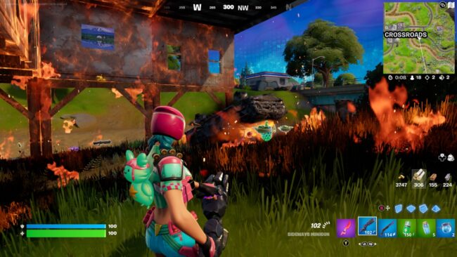The Flare Gun is also a great way to ignite structures but, during Chapter 3 Season 2, it is only available in Creative Mode and in Unvaulted game modes. Just shoot a flare at structures and watch as they burn bright!