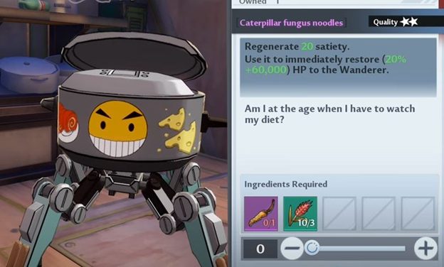 You will also need another ingredient, namely Brown Rice. You can find it in abundance on Raincaller Island. We recommend you collect as many of these ingredients as possible to unlock the Caterpillar Fungus Noodles recipe faster. And once you’ve done that, you can make this dish with 1 Caterpillar Fungus and 3 Brown Rice.