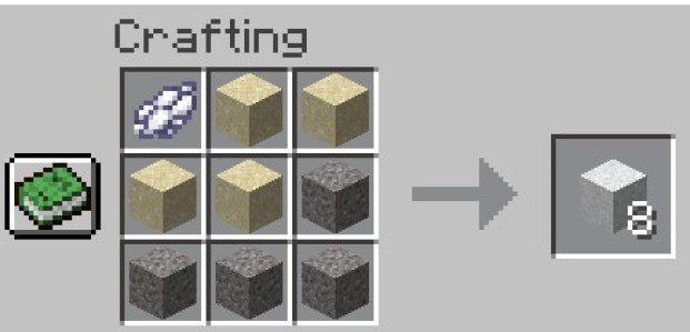 To create the White Concrete, you need a white dye and the other two aforementioned items. Once you have the required materials, place them in the 3 X 3 crafting menu grid and let the crafting process complete.