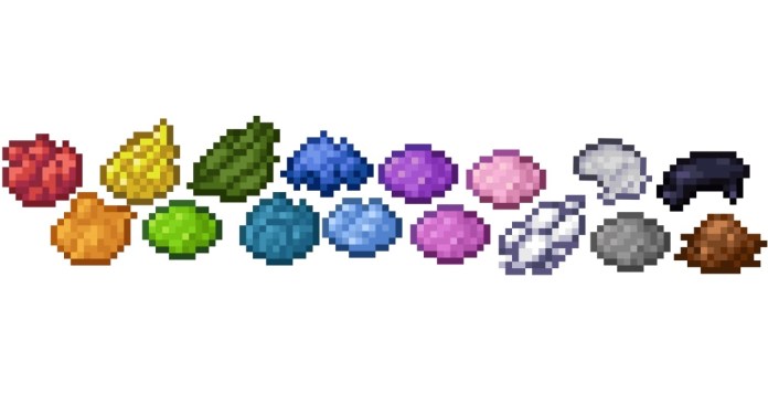 | Purple | 1 Red Dye + 1 Blue Dye OR Lapis Lazuli |