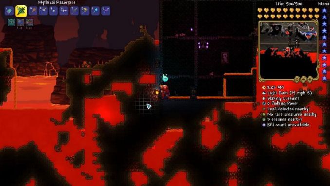 Hellstone is the final tier before hard mode in Terraria and if you’re playing with a melee build, you should find the best armor and equip it before entering hard mode. A complete set of molten armor will also give you great melee buffs that you can get even before entering hard mode.