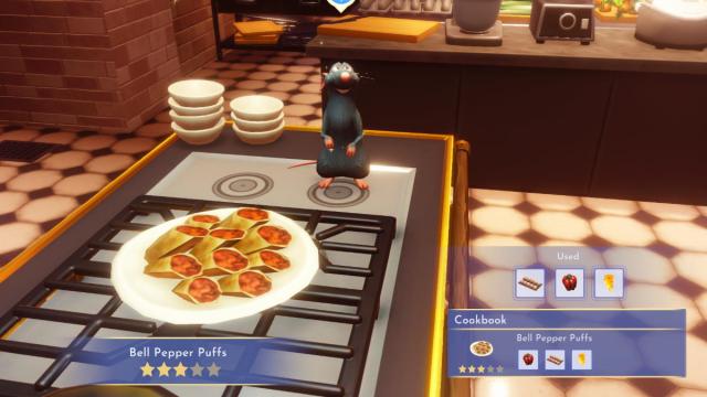 Now that you know Ratatouille’s recipe, you will find all the ingredients lying around the kitchen during Remy’s quest. Pick them up, interact with the Cooking Station, add the ingredients in the respective slots, and begin cooking in exchange for one Coal.