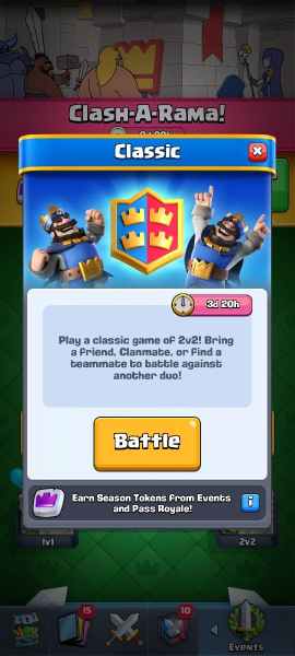 In the past, the 2v2 battle mode used to be available on the opening Battle screen. However, in recent updates, Supercell decided to move the 2v2 battle to a completely different section. Many returning players wonder where the 2v2 battle mode went and whether Supercell removed it, but the good news is that this is not the case. The 2v2 battle mode is still in Clash Royale, but it has been moved to the Events page.