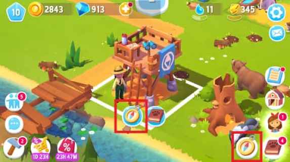 After you are done building the Ranger Station, tap on it and click on the Compass icon to access the Exotic Animal quests window.