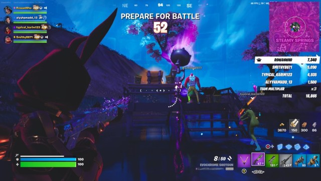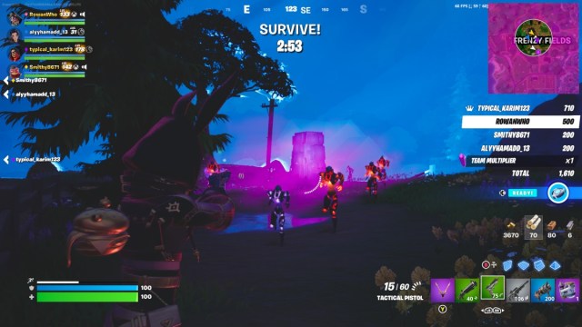 Horde Rush is available as an LTM found in the Discover menu. Once you have found it, make sure you bring a squad, or have the FILL option on as this is definitely a team battle! The game will launch and send you out in the Battle Bus where you should drop as soon as you can. Get to land and find as many chests and ammo boxes to open as possible. Beating this game relies heavily on grabbing ammo when ever you can. Don’t worry too much about picking up healing items because you automatically heal after each round. Chug Splashes are best used during the final round if you get into serious trouble.