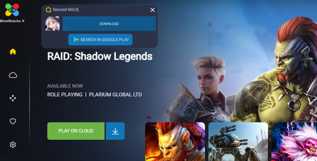 Step 3.) Search for Revived Witch in the field located in the top left corner of the BlueStacks emulator