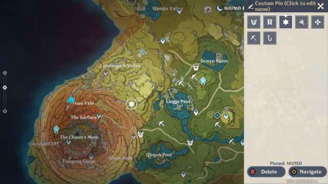 To quickly unlock The Chasm area in Genshin Impact, teleport to the Statue of Seven between the Dunyu Ruins and Lingju Pass. Once you are there, go to the star icon location as shown in the above map screenshot.