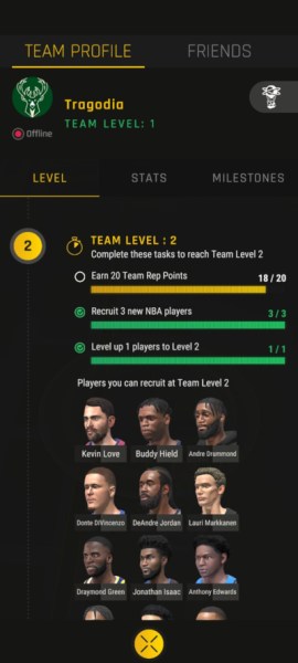 So that’s pretty much it. Complete the tasks, level up your team, then challenge better players that you meet in NBA All-World. If you win their challenge, you get to recruit them if your team level is sufficient. The higher your team level is, the better players you can recruit.