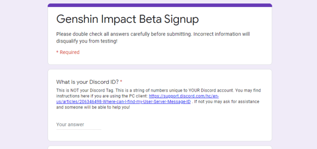 • Go to Genshin Impact beta registration form using this link