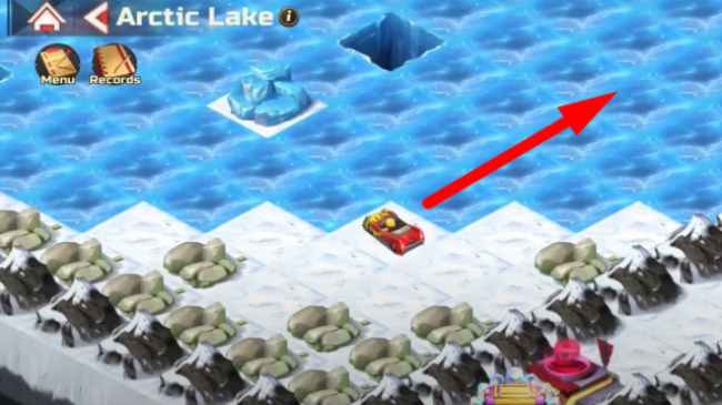 - Turn right when you reach the mountains, and drive straight between the ice and mountains to reach the next challenge (enemy team power: 120k);