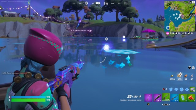 You must be swimming through Loot Lake to complete this task, as it will not count if you are in a boat. The first set of Energy Cells are nearest to the Seven Comms Device, and the last lot are positioned around the island in the middle of the lake.