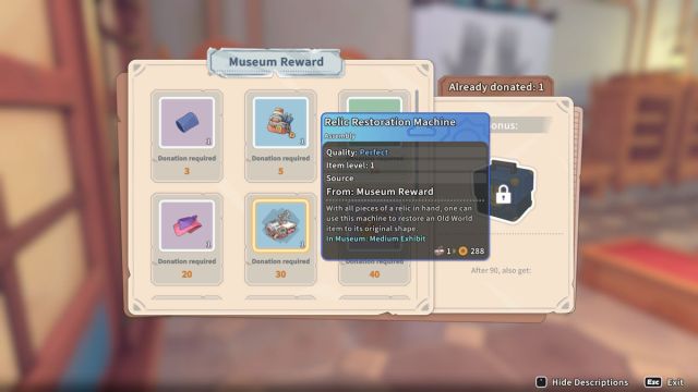 Your efforts won’t go empty-handed, of course. Once you’ve donated enough items, Catori rewards you with special museum rewards. You can check how many items you need to donate and claim any rewards from the Museum Reward desk, inside the museum.
