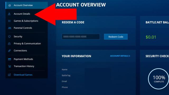 First, log into Battle.net with the account that currently has your desired number linked to it. On the left side of the website, click on the Account Details button.
