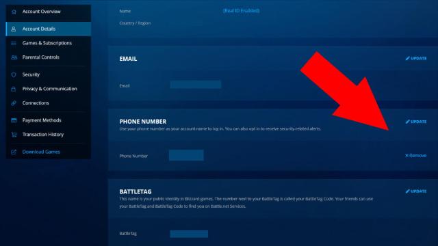 You should now see a full list of your account details, including your email address, battle tag, and of course phone number. Next to your phone number, you should see a Remove button with an X next to it, so click on it to start the removal process.