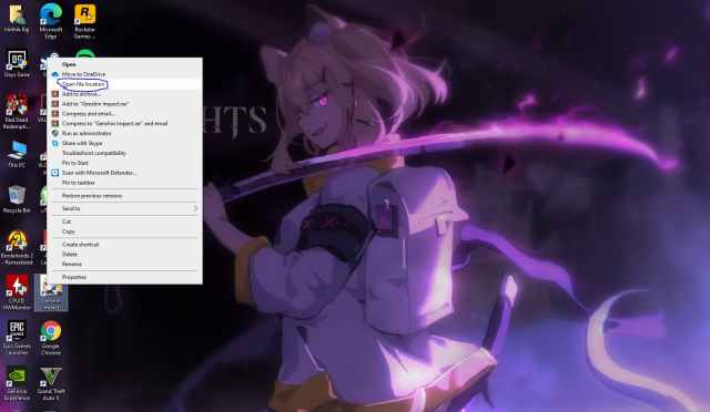 To find the uninstall.exe file, right-click on Genshin Impact and select the Open file location option.