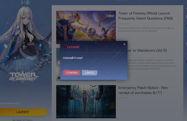 At the time of writing this article, Tower of Fantasy is available on PC via its official game client/launcher. The game is yet to arrive on Steam and Epic Game Store. So, the guide will focus on the steps you need to perform to uninstall Tower of Fantasy on PC installed via the official game client.