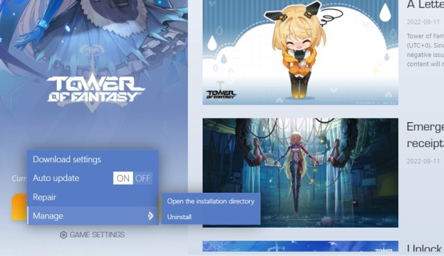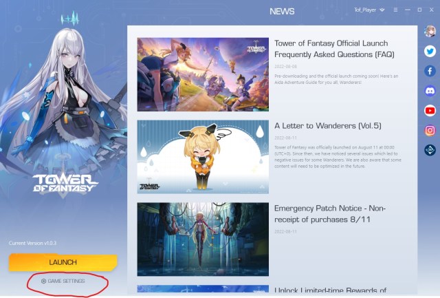 - Open Tower of Fantasy game launcher.