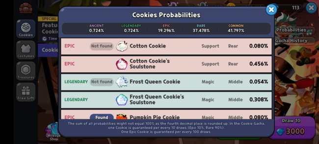 As the Cotton Cookie is a featured cookie, you have more chances of getting it. Precisely, you have a 1.440% chance of drawing the Cotton Cookie and an 8.200% chance of drawing her soulstone.
