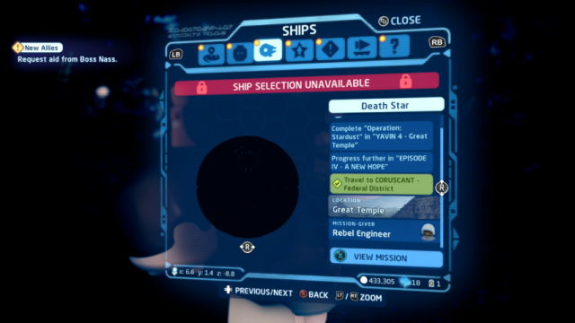 After starting the campaign, you’ll have to follow various steps on your quest to pilot this weapon. The first quest step will commence after you travel to Coruscant and pay a visit to the Federal district. While visiting this region in other campaigns will work, Episode IV takes you there during its natural progression.
