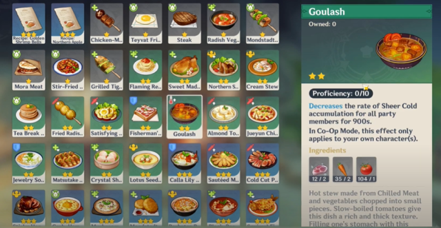 Being a roleplaying game, Genshin Impact offers a plentitude of food items that comes with different buffs and uses. And, Goulash is a new addition to the existing list of food items, with an ability to reduce sheer cold accumulation once consumed.