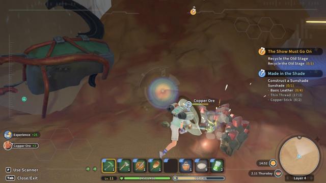 You should have no problem breaking down basic scrap piles with your starting tools, but eventually you’ll run into some tougher materials that are too sturdy for your current tool set. If you see a material with a small yellow arrow pointing up, that means it requires a stronger tool.