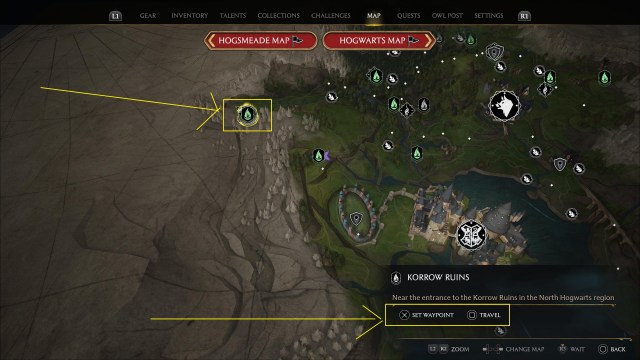 At the time of writing this guide, Hogwarts Legacy‘s map was divided into three sections. The first is Hogwarts itself, the second is Hogsmeade, and the third is Highlands, which covers the rest of the open world apart from Hogwarts Castle and Hogsmeade town.