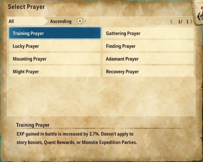 - Level 1 – Training Prayer – Increases experience gained in battle