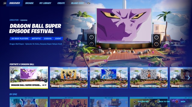 The quest asks players to ‘Watch Dragon Ball Super in Dragon Ball Super Episode Festival’. There are a few to choose from and it does not matter which episode you choose. All you have to do is go to the Creative list ‘Fortnite X Dragon Ball’ and find the Dragon Ball Super Festival island you want to visit.