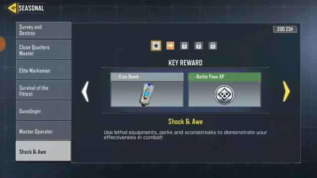 To get your hands on COD Mobile’s Cryo Bomb, players must complete all the four missions of the Shock & Awe Seasonal event. Players are required to complete the following missions in order to unlock Cryo Bomb: