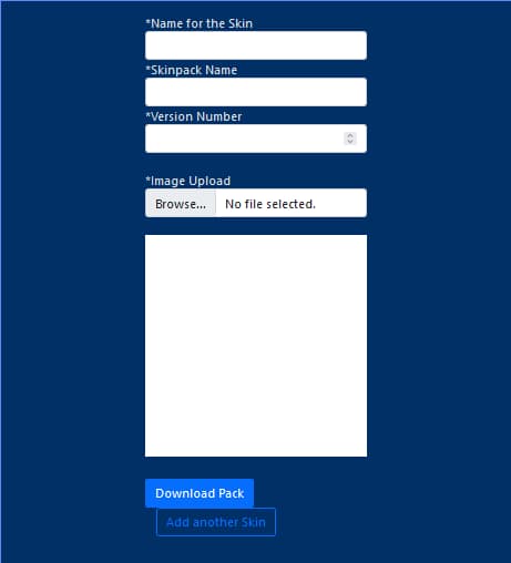 Once you have the PNG file, go to the Skinpack Creator tool and input the details into the form, such as the Name of your Skin, the Name of your Skinpack and a Version number for your Skinpack. Next, upload the PNG file and save the generated MCPACK file.