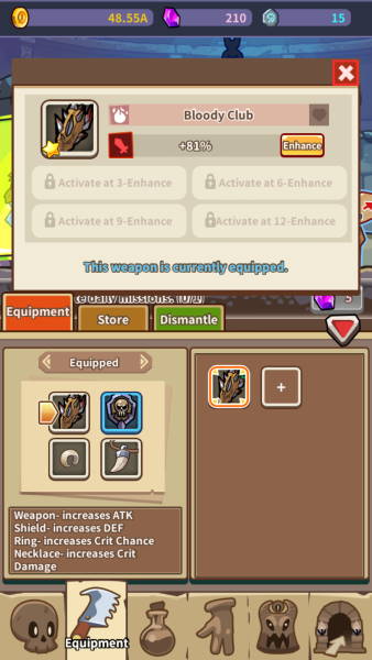 Make sure to be using your free equipment lottery tickets as mentioned above to get new gear for your warrior. Getting better gear for your warrior is a good way to strengthen your warrior, but because it’s locked behind ad and item walls, it’s probably not going to be your main method of powering up.