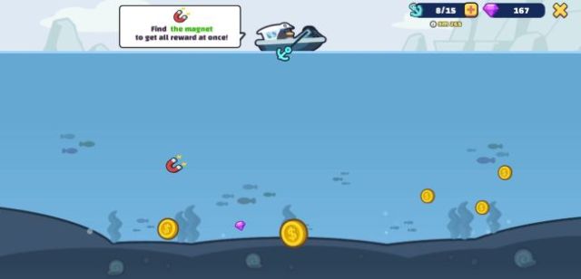 There’s no way of knowing where the magnet is, but once you have uncovered it, make it your goal to collect it and nothing else, as collecting the magnet will automatically clear the stage, giving you all the goodies that are left in the ocean.