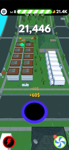 As you are traveling through the city sucking up everything in sight, occasionally you will see a big blue BONUS button at the top left corner of the screen. If you can tap this before it disappears, you will earn some free coins for your troubles, and you do not have to even do anything! You can even watch a short advertisement to multiply your bonus money.