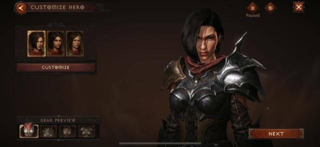 When you get started with Diablo Immortal, you get the option to select between different classes. Each Class in Diablo Immortal has a Male and Female version. Depending on your choice, when you select any of the two Sexes, you will be on the Character Customization screen of Diablo Immortal with Gear Preview, Customization, and Next options.