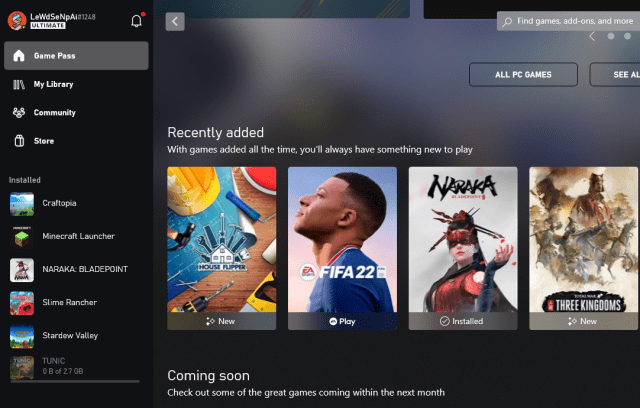 - Or, look for it in the Game Pass recently added section.