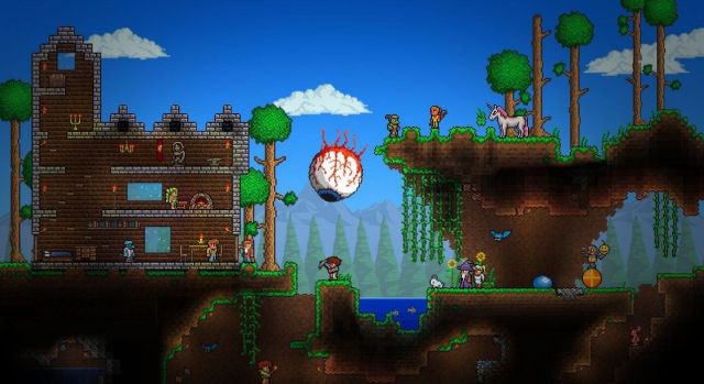Terraria is an action-adventure sandbox game currently available on PS4, Xbox, Android, PC, iOS, and Nintendo Switch platforms.