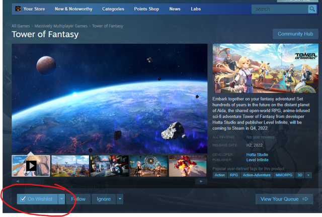 Here are the steps that you have to follow to Download/Wishlist Tower of Fantasy on Steam:
