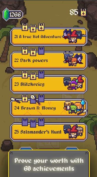 In King Crusher, achievements are like missions. There are three for every level, and like in most games where you get three-stars per level completed perfectly, here, you can complete all the three achievements for that “3-star rating”. The rewards are always gems, and that’s great because they will help add up to your Incantations.