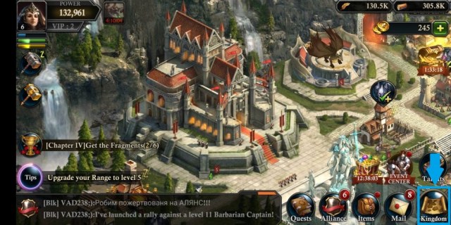 You can now head on to the Kingdom Map (the bottom right icon), where you will see your current kingdom with all of its “neighbors” and probably your alliance too if you joined one.